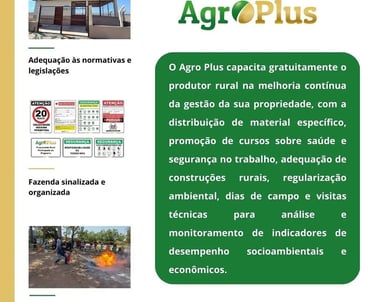 O AgroPlus capacita gratuitamente produtores rurais na melhoria contínua da gestão de suas terras, com distribuição de equipamentos específicos, promoção de cursos de saúde e segurança no trabalho, adequação de edificações rurais, regulamentação ambiental, jornadas de treinamento em campo e visitas técnicas para análise e análise. vigilância indicadores de desempenho socioambiental e econômico. É um programa de gestão transparente e participativo que atua em nível nacional, para atender às demandas do mercado por produtos sustentáveis, baseado na melhor gestão das propriedades rurais. As ações são implementadas em estreita colaboração com produtores rurais, governos estaduais e municipais, sociedade civil, indústria e comércio, instituições de pesquisa, ensino e extensão, e os resultados obtidos são a melhoria da gestão, a conservação dos recursos naturais, a governança da produção atividades, o uso de ações. além dos bons. e recursos. práticas agrícolas e o bem-estar social dos trabalhadores, produtores rurais e comunidades locais.