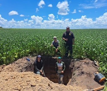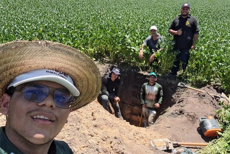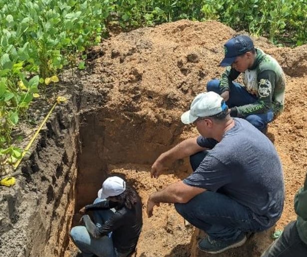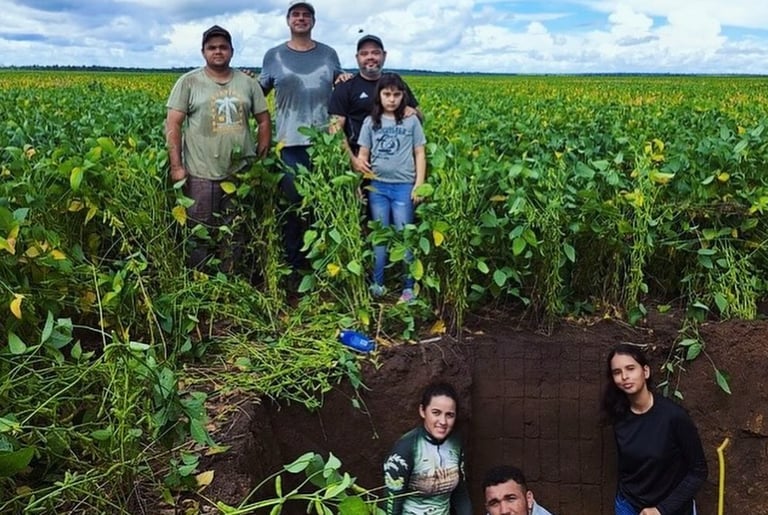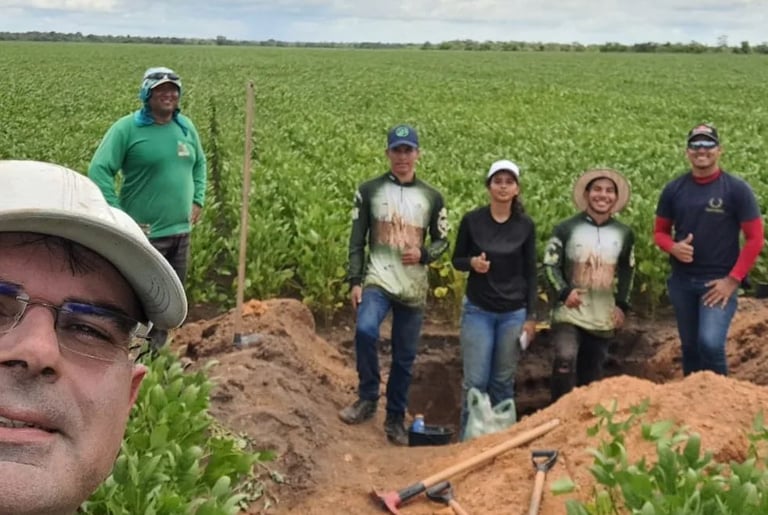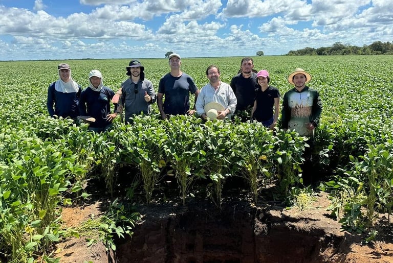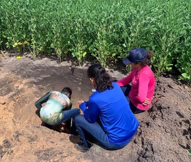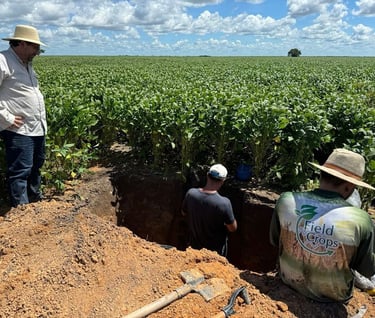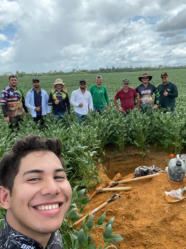 🌱🚀 Hoje, a equipe FieldCrops-MA, em parceria com a equipe AgriSience se encontrou hoje na Fazenda São Bernardo em Buriti-MA, uma das participantes do Campeonato Soybean Money Maker da safra 23/24. Para a realização da coleta de raízes e de solo para análises físicas e químicas.