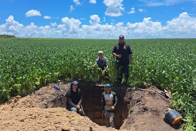 🌱🚀 Hoje, a equipe FieldCrops-MA, em parceria com a equipe AgriSience se encontrou hoje na Fazenda Typuana Brejo-MA, uma das participantes do Campeonato Soybean Money Maker da safra 23/24. Para a realização da coleta de raízes e de solo para análises físicas e químicas.