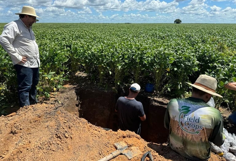 🌱🚀 Hoje, a equipe FieldCrops-MA, em parceria com a equipe AgriSience se encontrou hoje na Fazenda Europa, uma das participantes do Campeonato Soybean Money Maker da safra 23/24. Para a realização da coleta de raízes e de solo para análises físicas e químicas.